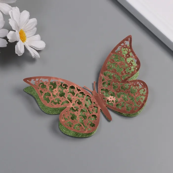 Наклейка бумага, пластик "Цветочные зелёные бабочки" блёстки набор 12 шт 12 см, 10 см 8 см 1052425 — Характеристики
