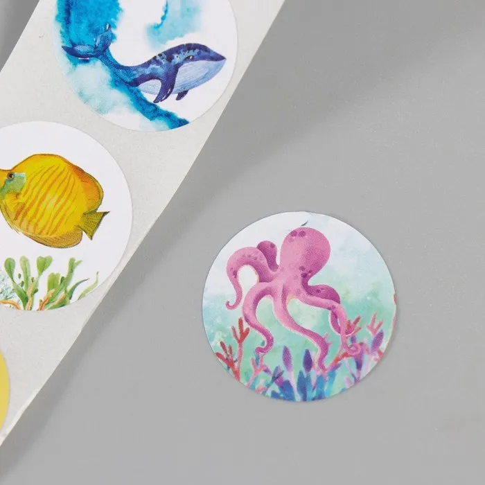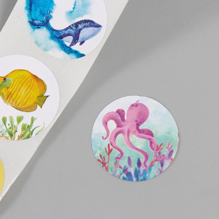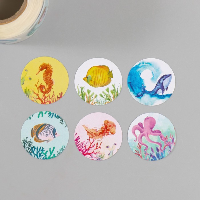 Наклейка бумага «Подводный мир», d=2.5 см, 252 шт. в рулоне — Характеристики