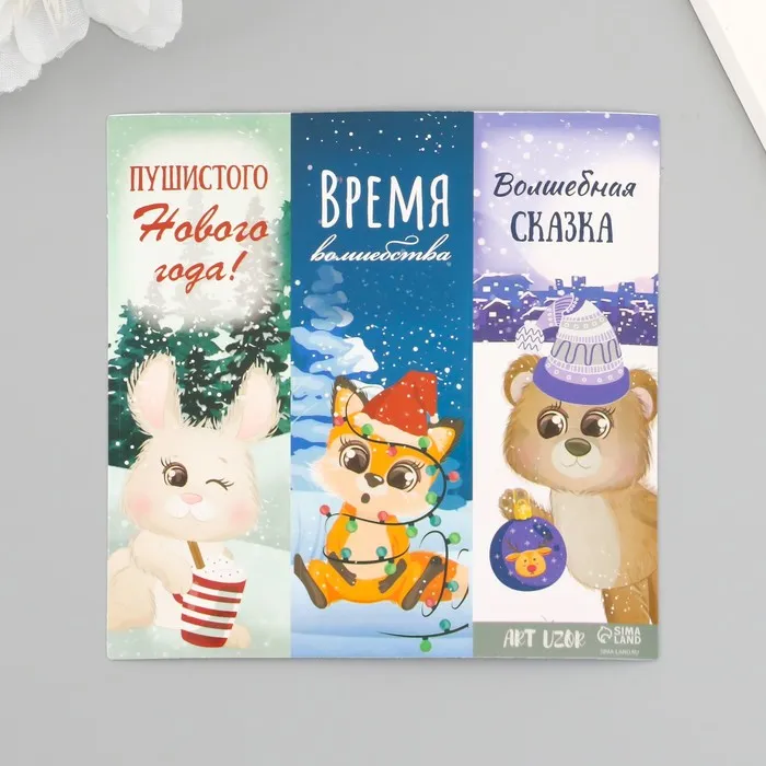 Наклейка бумага "Пушистый Новый год" 3х9 см лист 10х10 см — Характеристики