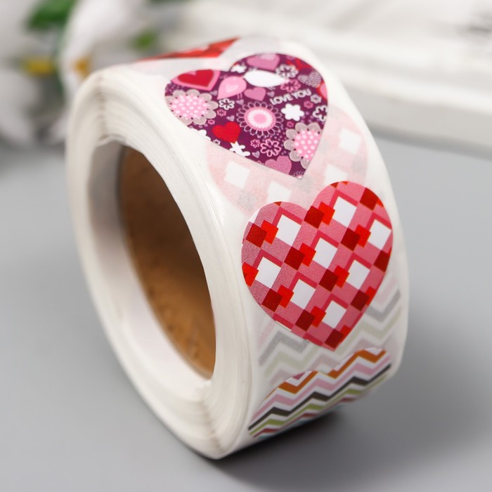 Наклейка бумага «Разные сердечки», d=2.5 см, 500 шт. в рулоне, 3×6.5×6.5 см
