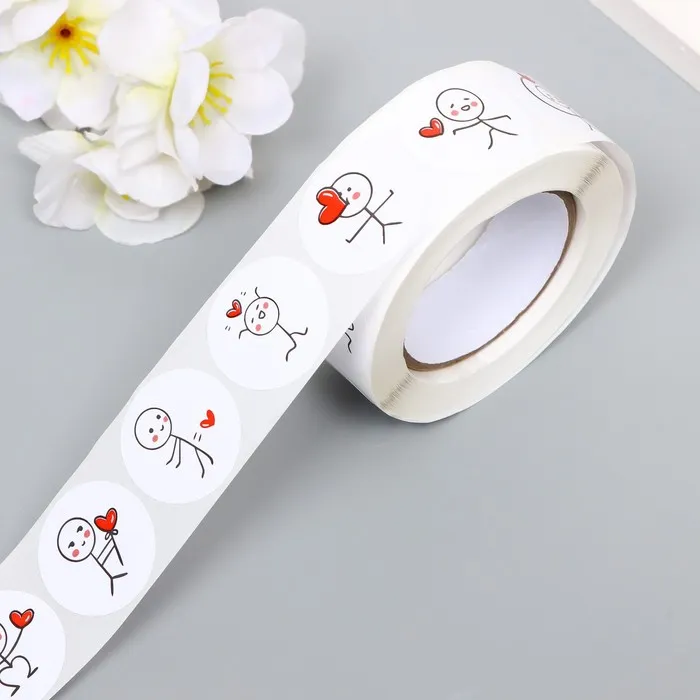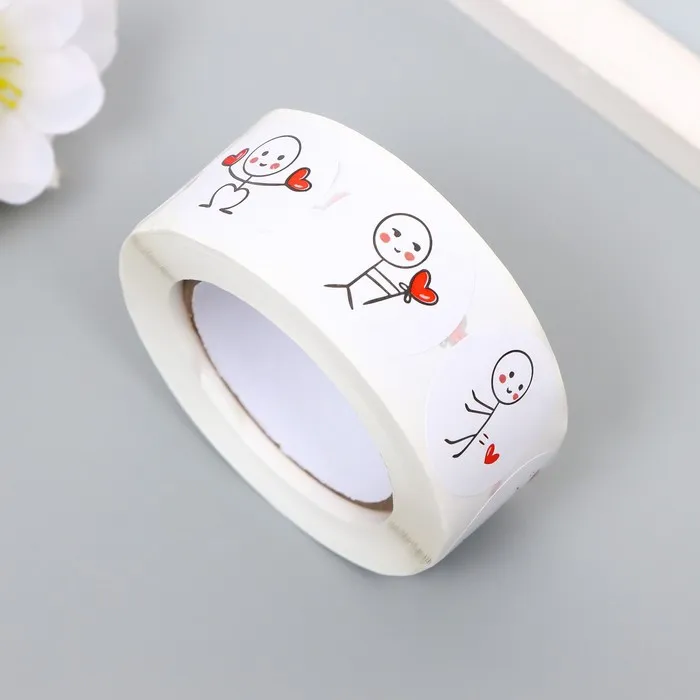 Наклейка бумага «Романтик», d=2.5 см, 500 шт. в рулоне, 3×6.5×6.5 см — Характеристики