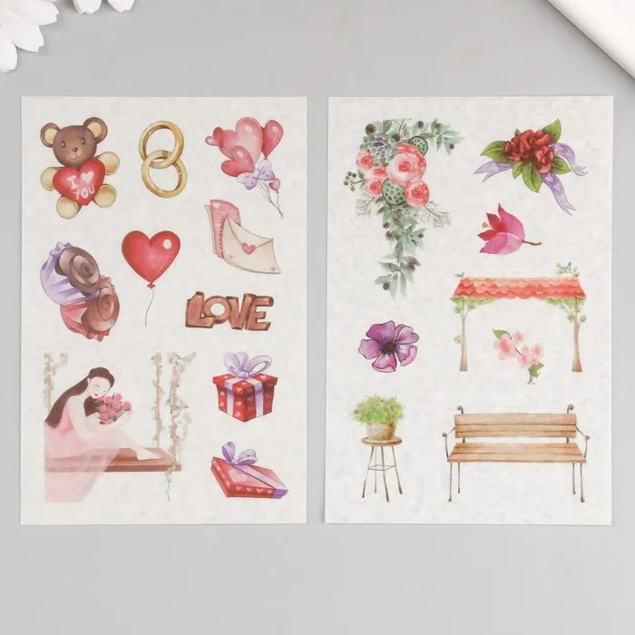 Наклейка бумага "Романтика для двоих" набор 6 листов 18,6х10 см — Характеристики