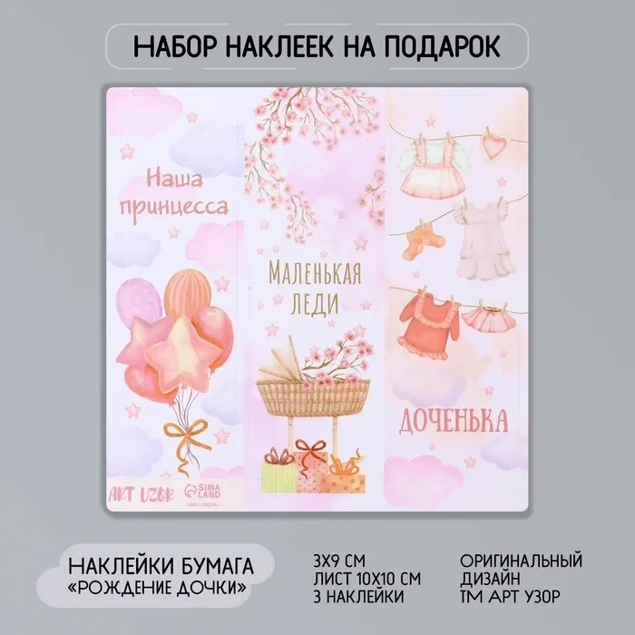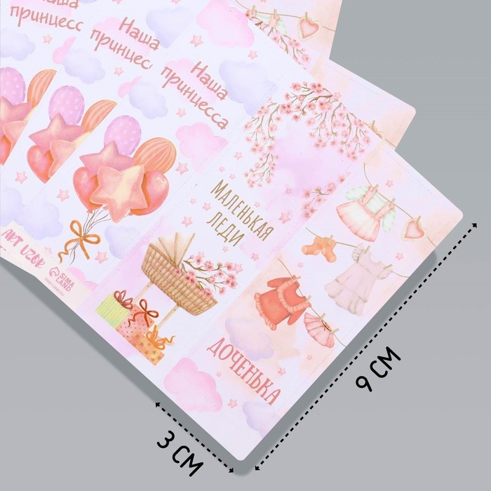 Наклейка бумага "Рождение дочки" 3х9 см лист 10х10 см — Характеристики