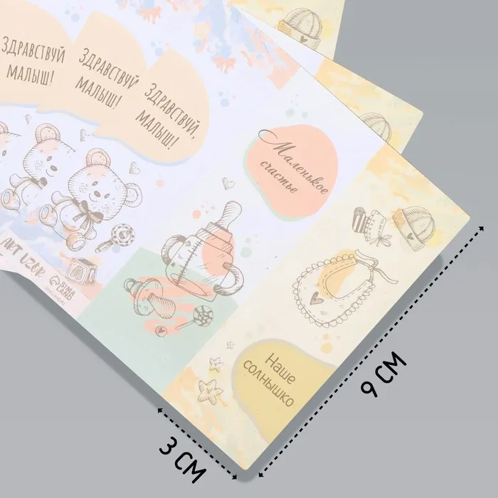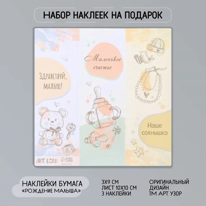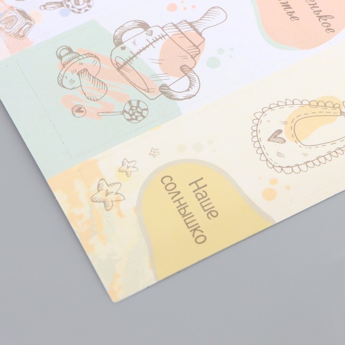 Наклейка бумага "Рождение малыша" 3х9 см лист 10х10 см — Характеристики