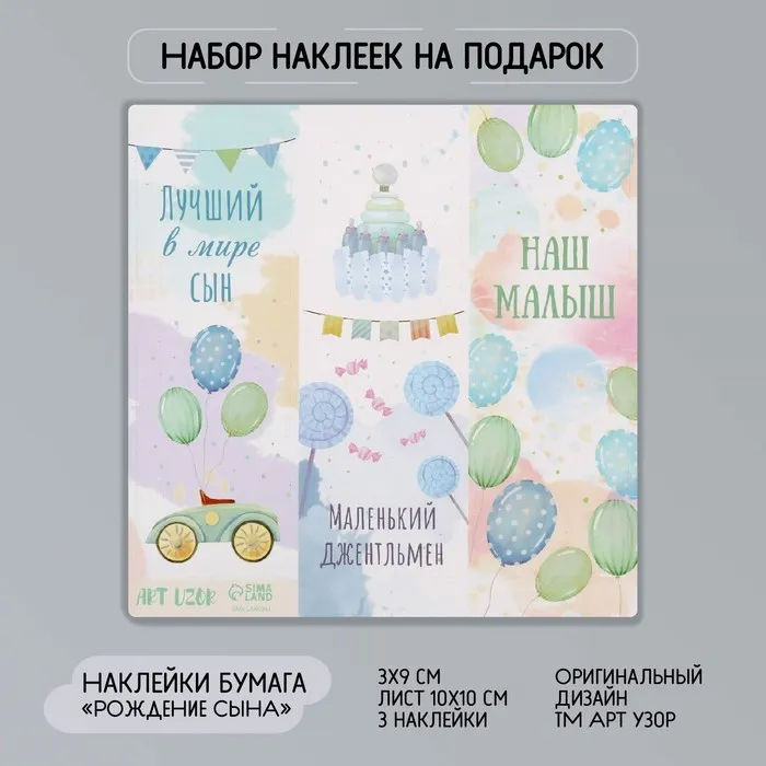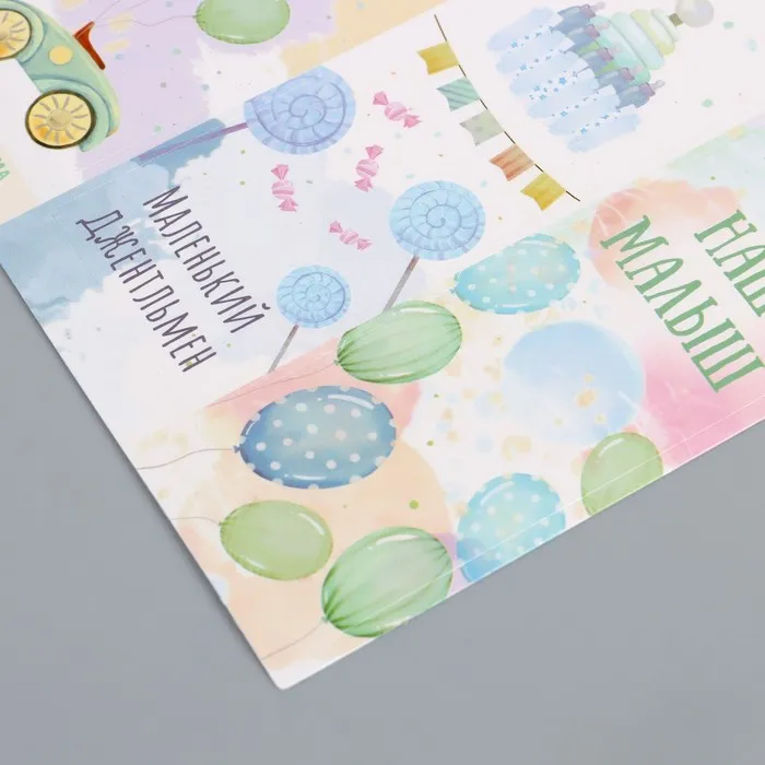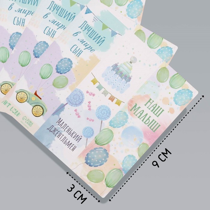 Наклейка бумага "Рождение сына" 3х9 см лист 10х10 см — Характеристики