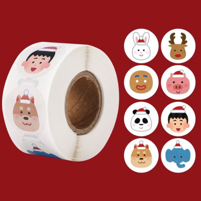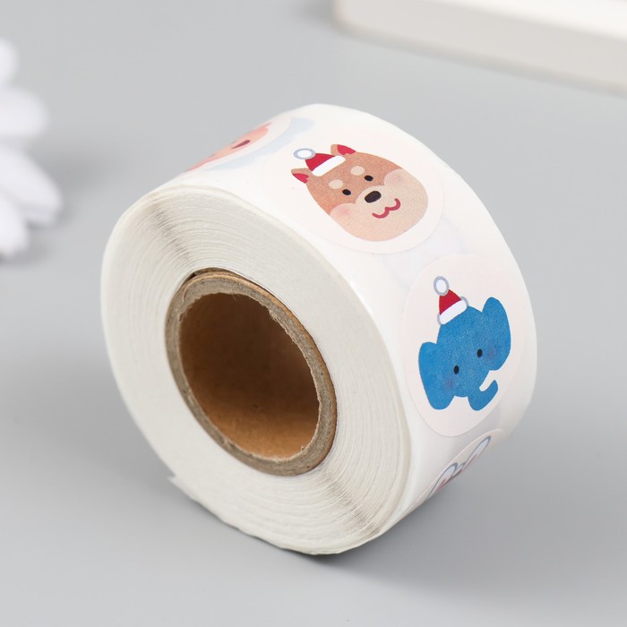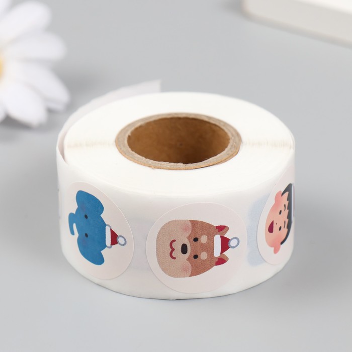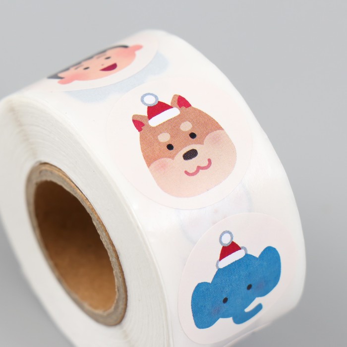 Наклейка бумага «Рождественские мордашки», d=2.5 см, 500 шт. в рулоне, 3×6.5×6.5 см — Характеристики
