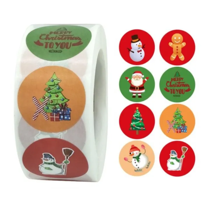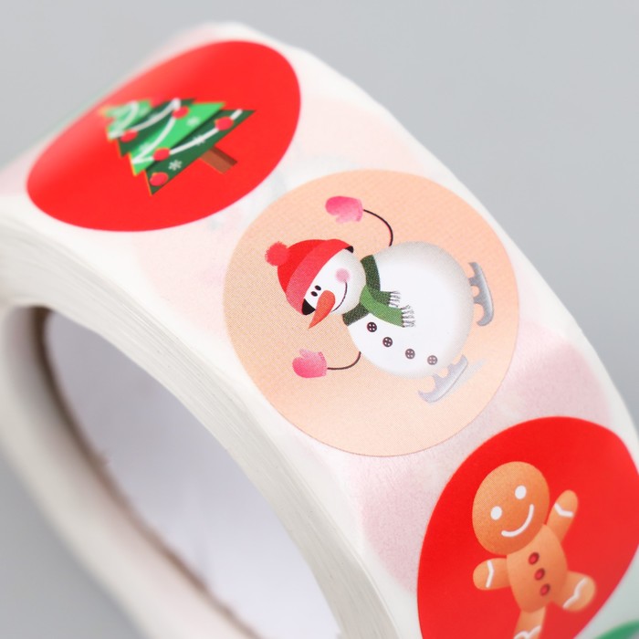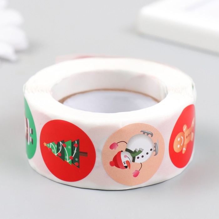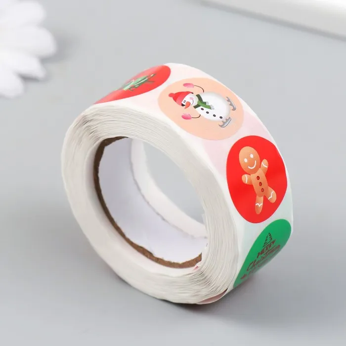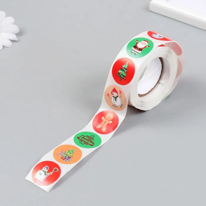 Наклейка бумага "Рождество" d=2,5 см 500 шт в рулоне 3х6,5х6,5 см — Характеристики