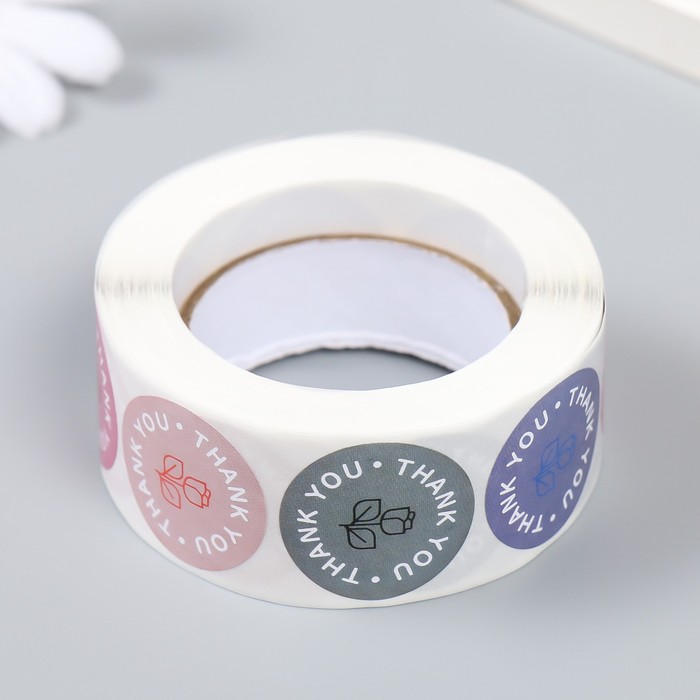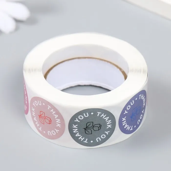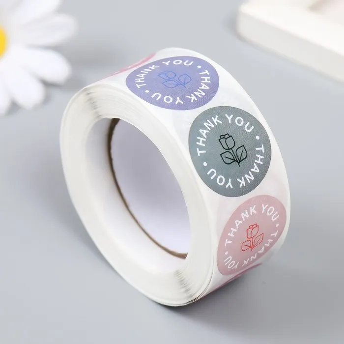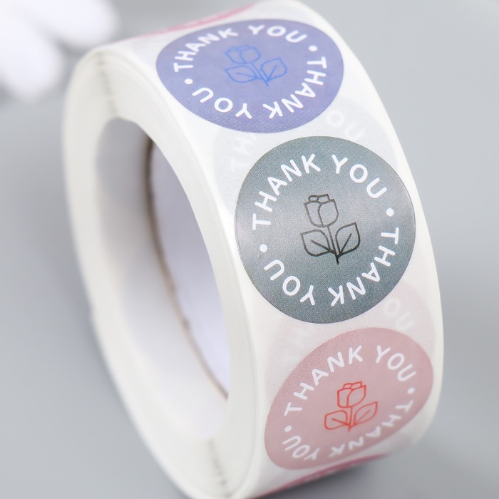 Наклейка бумага "Розочка. Благодарность" d=2,5 см 500 шт в рулоне 3х6,5х6,5 см — Характеристики