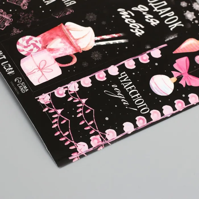 Наклейка бумага "Розовый и чёрный" 3х9 см лист 10х10 см — Характеристики