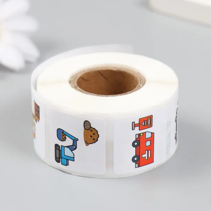 Наклейка бумага "Служебный транспорт" d=2,5 см 500 шт в рулоне 3х6,5х6,5 см
