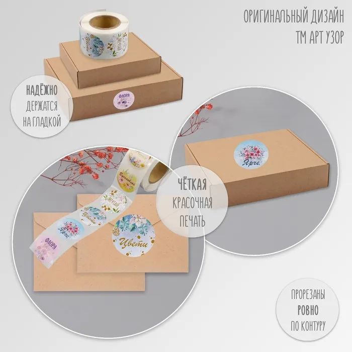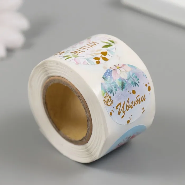 Наклейка бумага «Цветочки», d=2.5 см, 252 шт. в рулоне — Характеристики