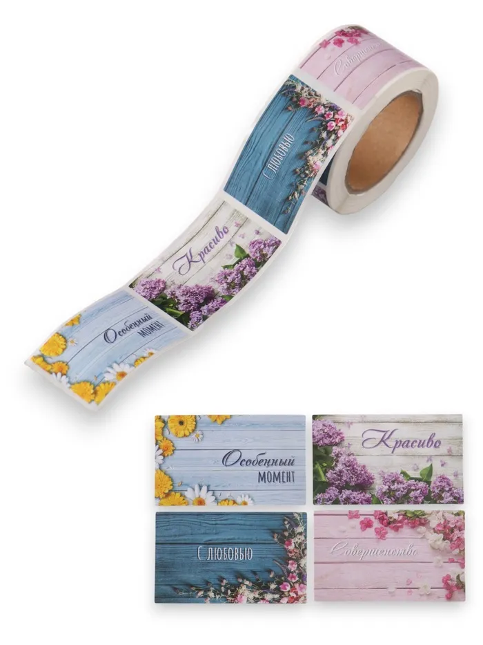 Наклейка бумага "Цветочная классика" 3х5 см 200 шт в рулоне — Характеристики
