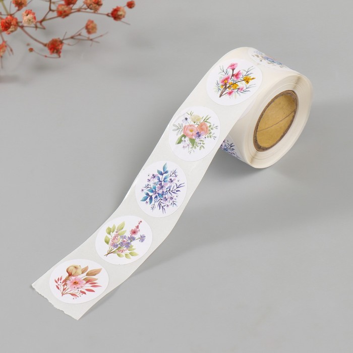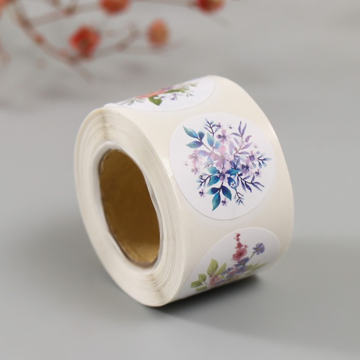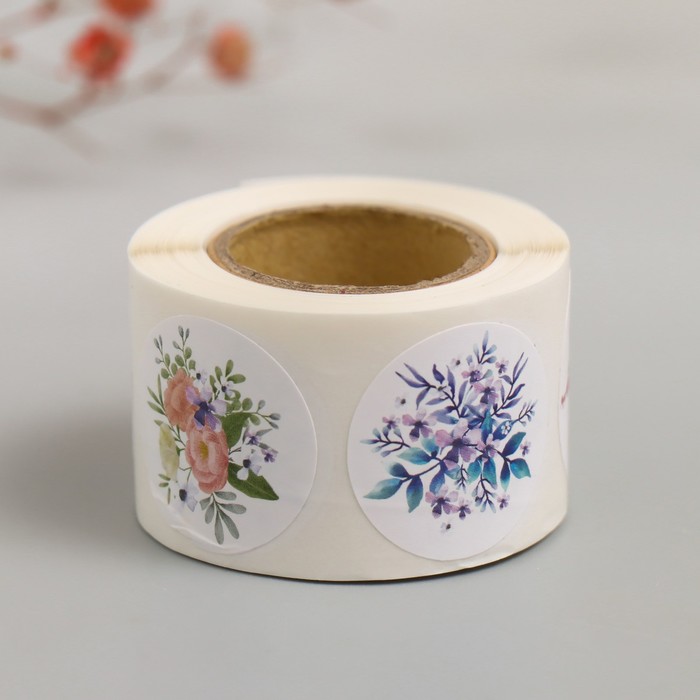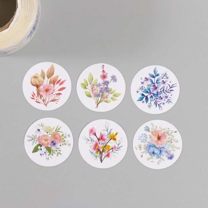 Наклейка бумага "Цветочные букеты" d=2,5 см 252 шт в рулоне — Характеристики