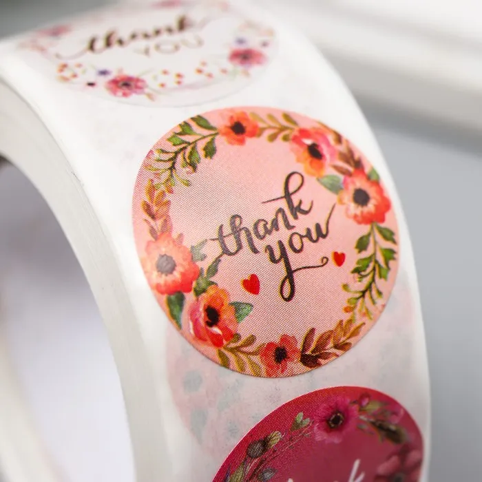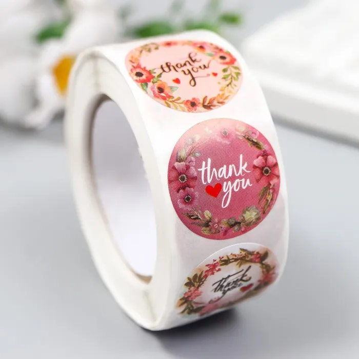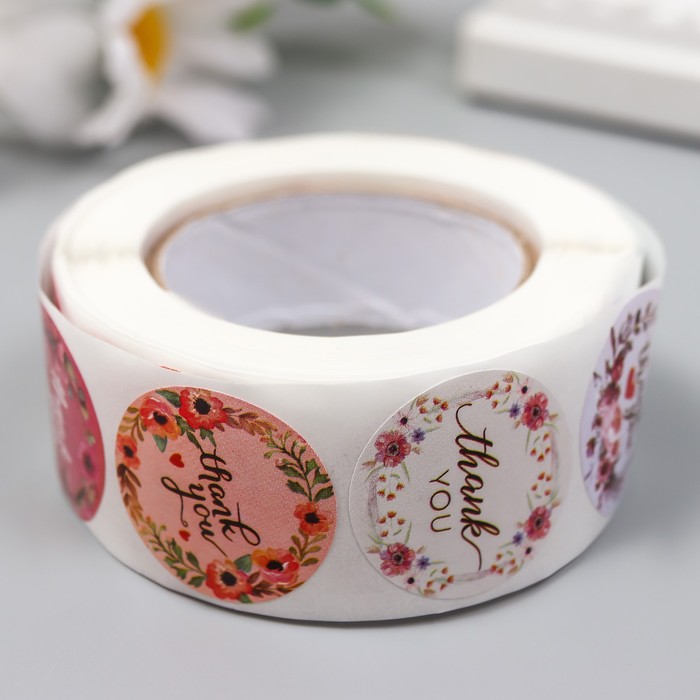 Наклейка бумага "Цветочные" d=2,5 см 500 шт в рулоне 3х6,5х6,5 см — Характеристики