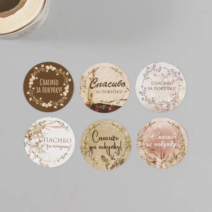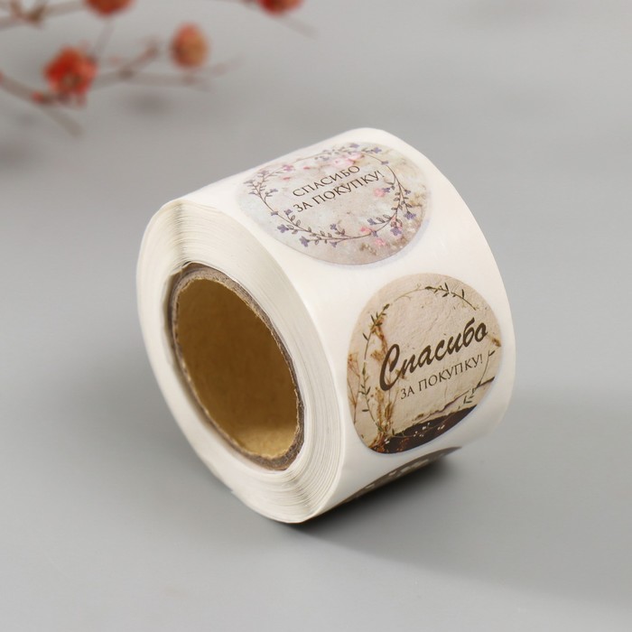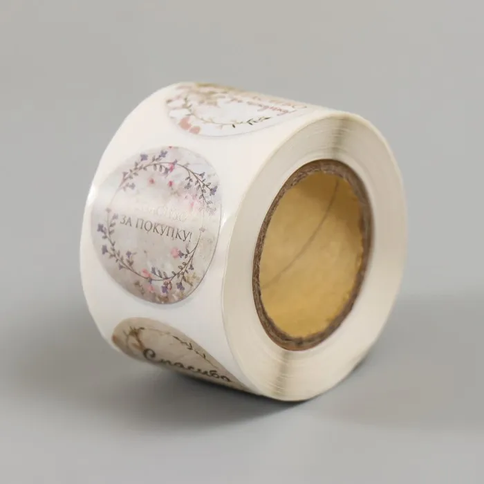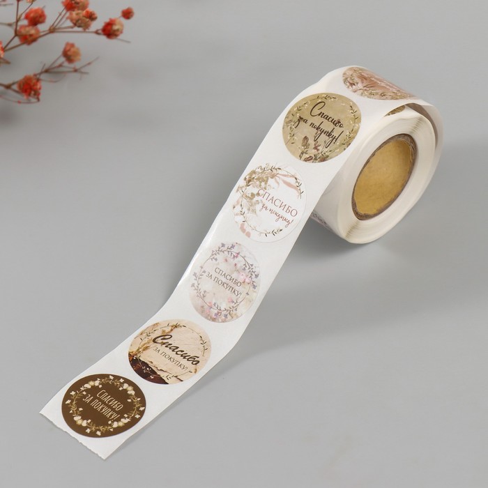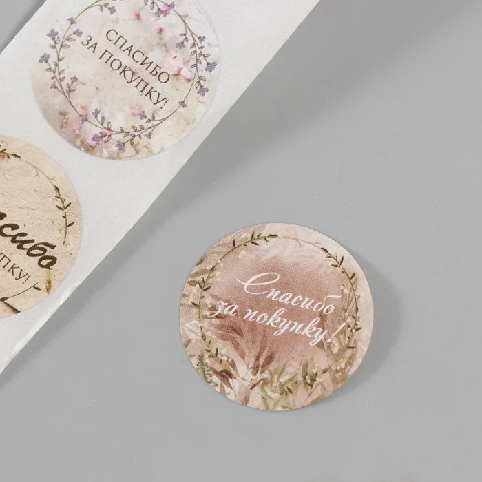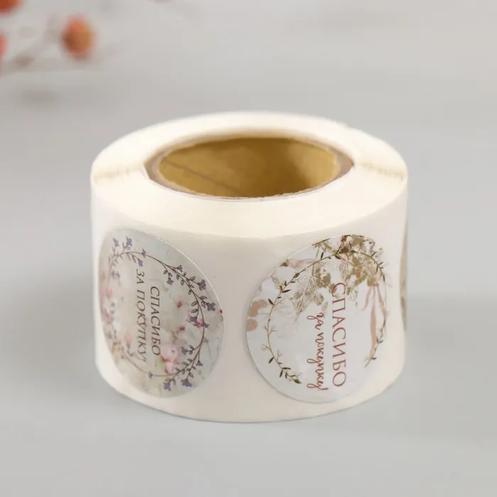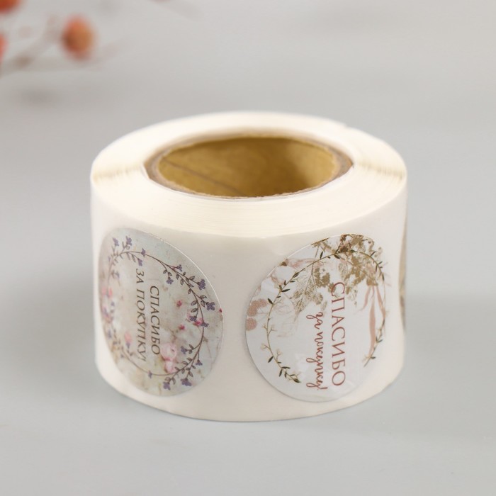 Наклейка бумага "Цветочные венки. Спасибо" d=2,5 см 252 шт в рулоне — Характеристики