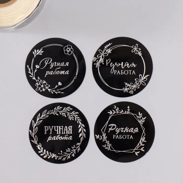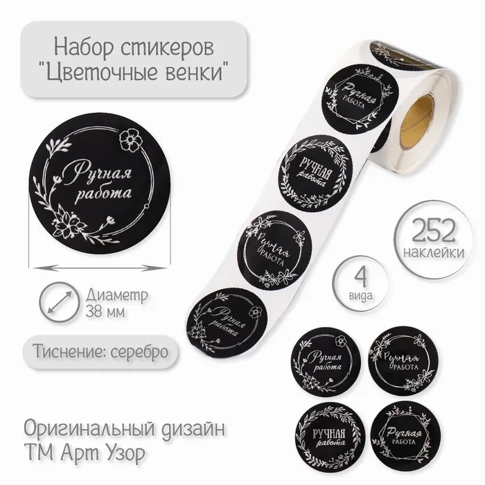Наклейка бумага "Цветочные венки" тиснение серебро d=3,8 см 252 шт в рулоне — Характеристики