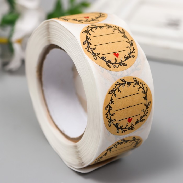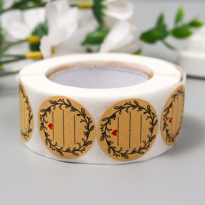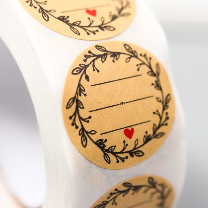 Наклейка бумага «Веточка и сердечко», d=2.5 см, 500 шт. в рулоне, 3×6.5×6.5 см — Характеристики
