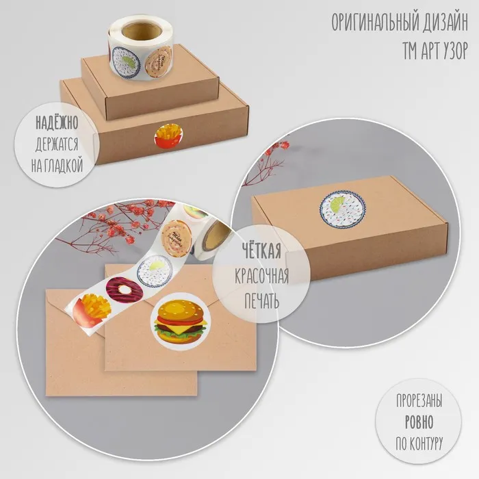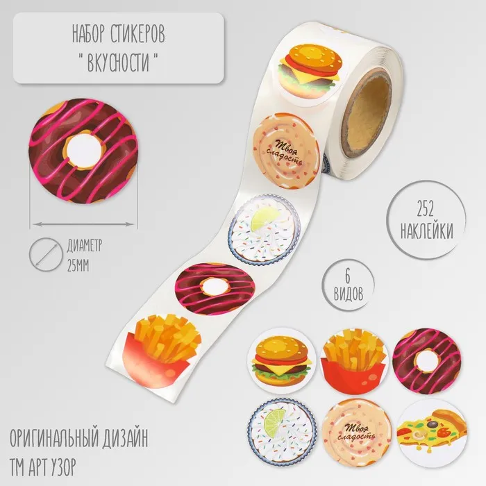 Наклейка бумага «Вкусности», d=2.5 см, 252 шт. в рулоне — Характеристики