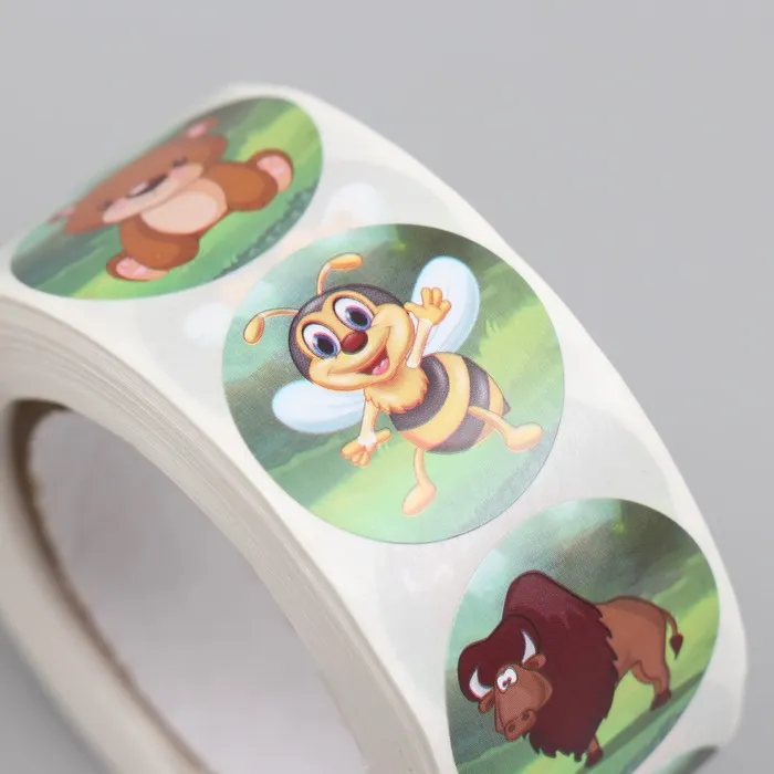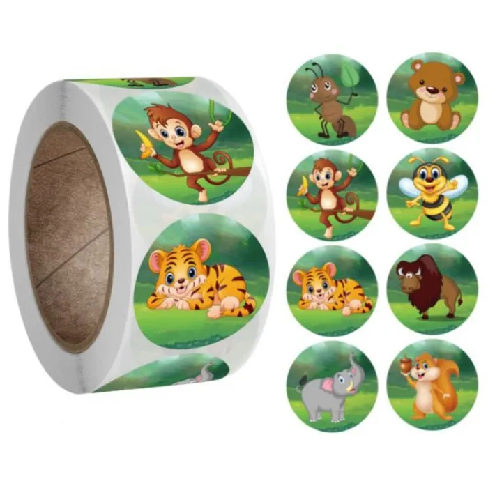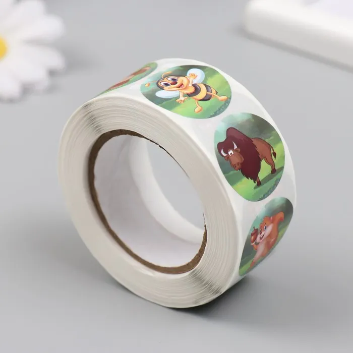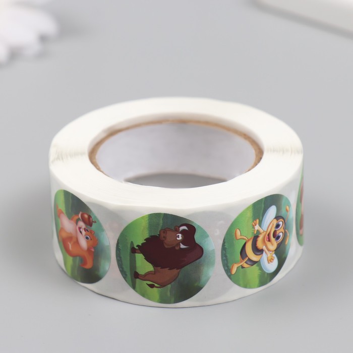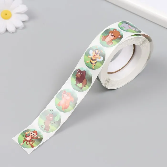 Наклейка бумага "Жители джунглей" d=2,5 см 500 шт в рулоне 3х6,5х6,5 см — Характеристики