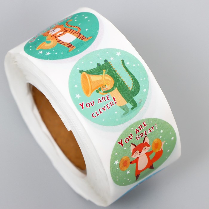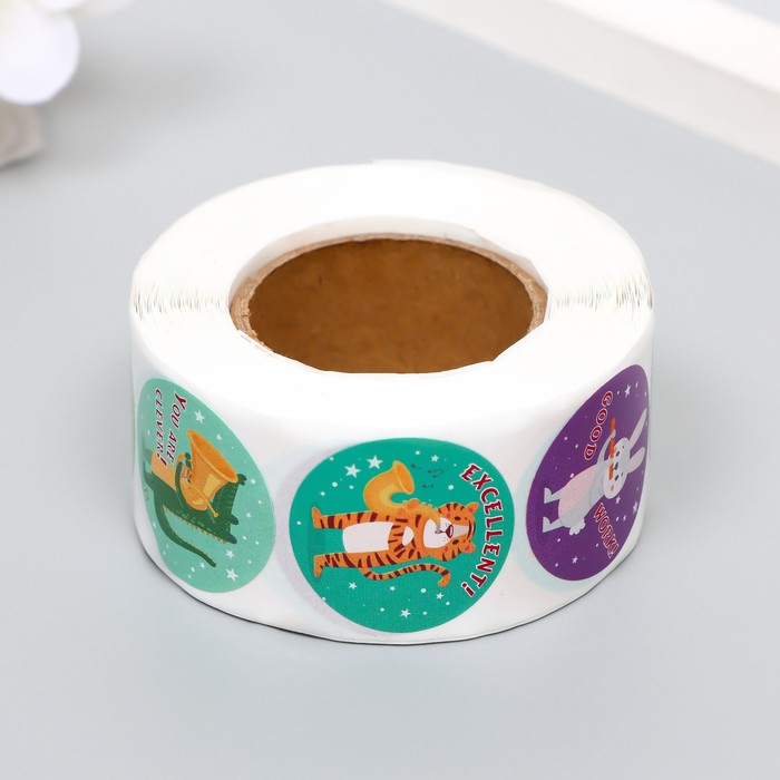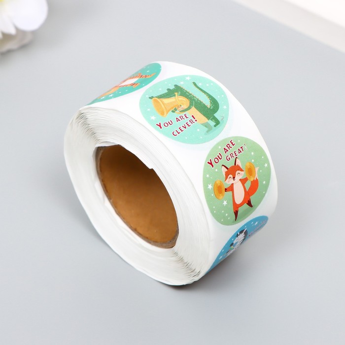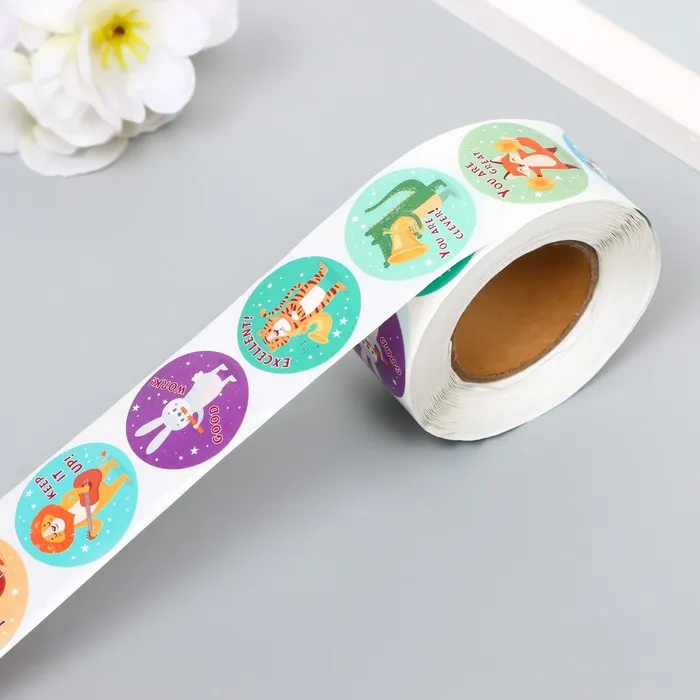 Наклейка бумага «Зверята-музыканты», d=2.5 см, 500 шт. в рулоне, 3×6×6 см — Характеристики