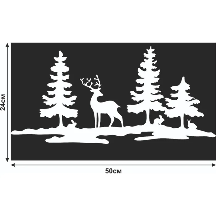 Наклейка декоративная для окон "Олень в лесу" 50х24 см (снег 10х20 см) — Характеристики
