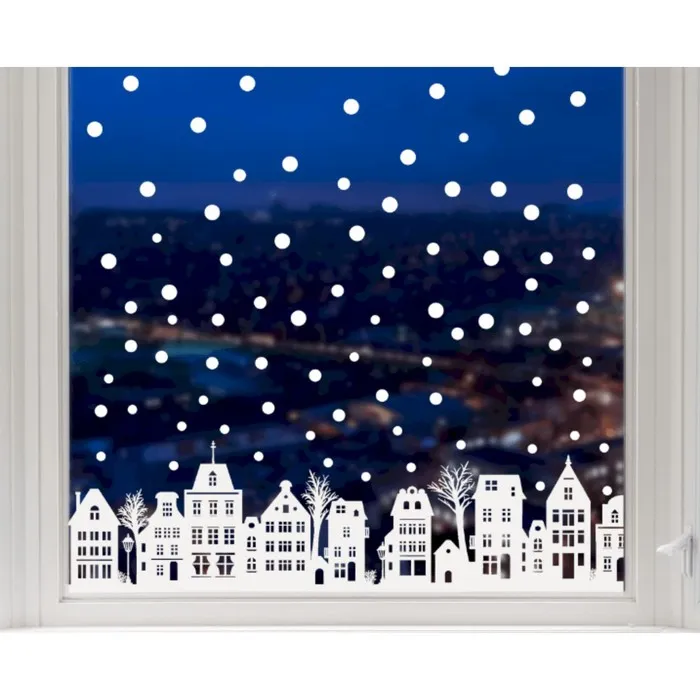 Наклейка декоративная для окон "Снежный город" 140х25 см (снег 10х40 см)