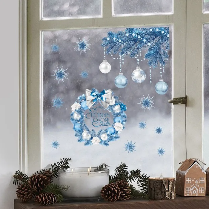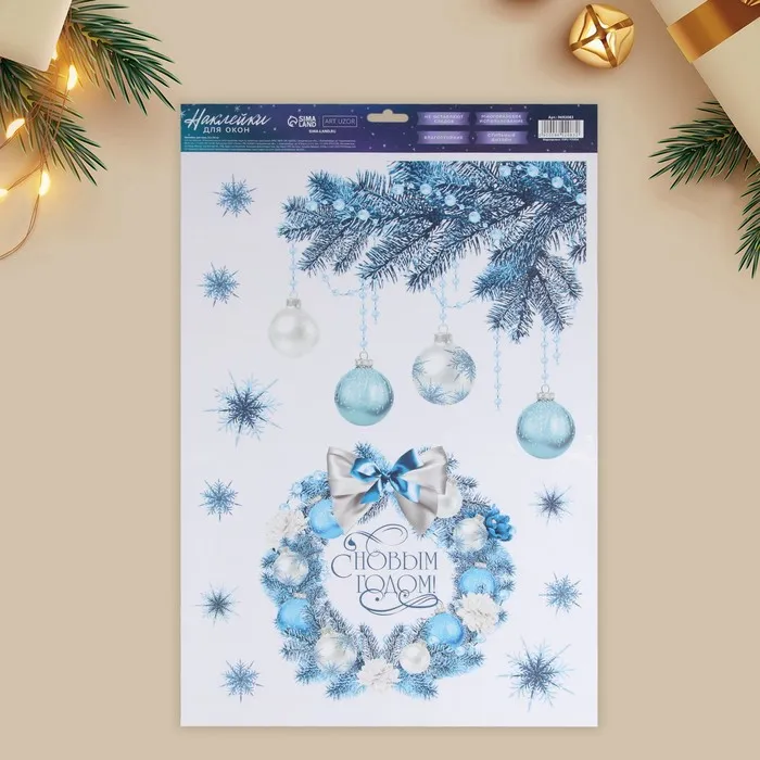 Наклейка для окон «Новогодний венок», многоразовая, 33 х 50 см — Характеристики