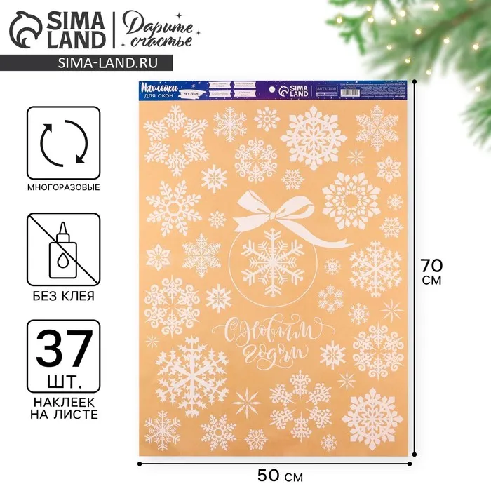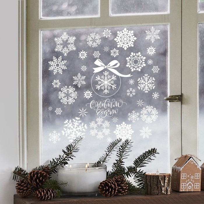 Наклейка для окон «Снежинки», многоразовая, 50 х 70 см — Характеристики