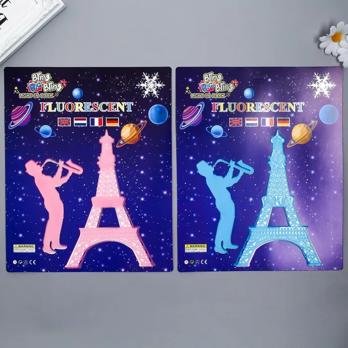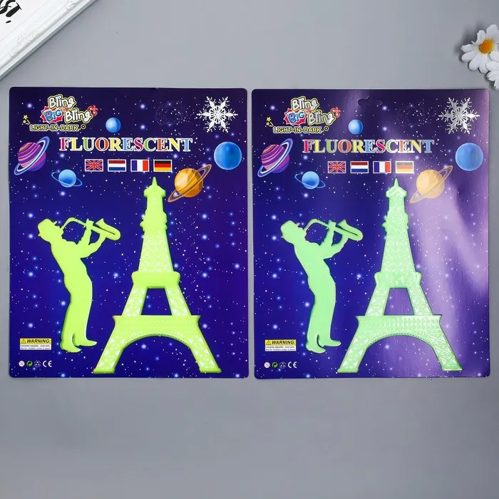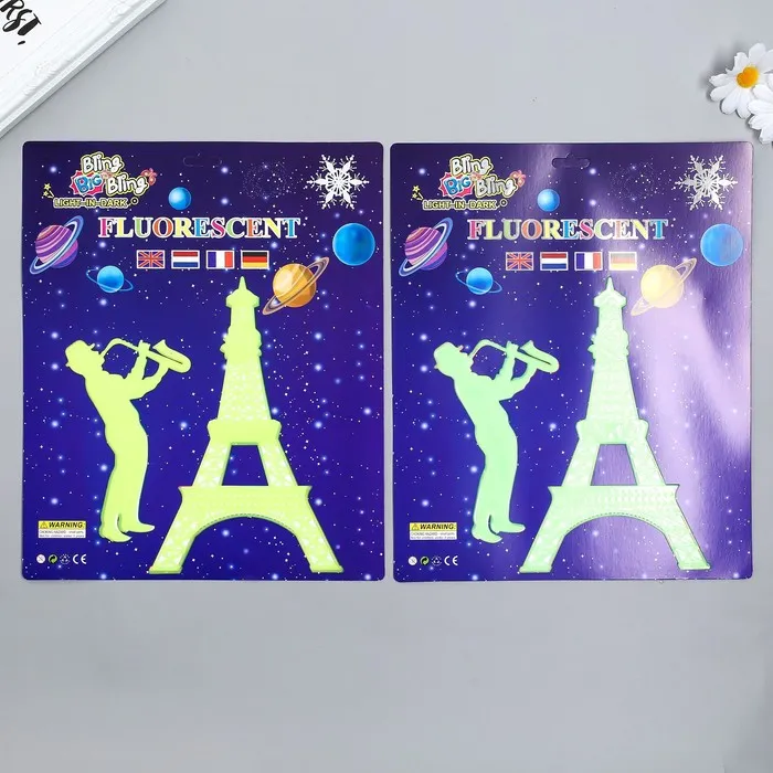 Наклейка фосфорная "Эйфелева башня и саксофонист" с клеев.подуш. набор 2 шт МИКС 29,5х25 см 788219 — Характеристики