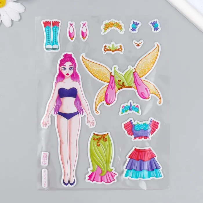 Наклейка-игра «Одень куклу. Эльф и единорог», для скрапбукинга, творчества, пластик, 15×20 см — Характеристики