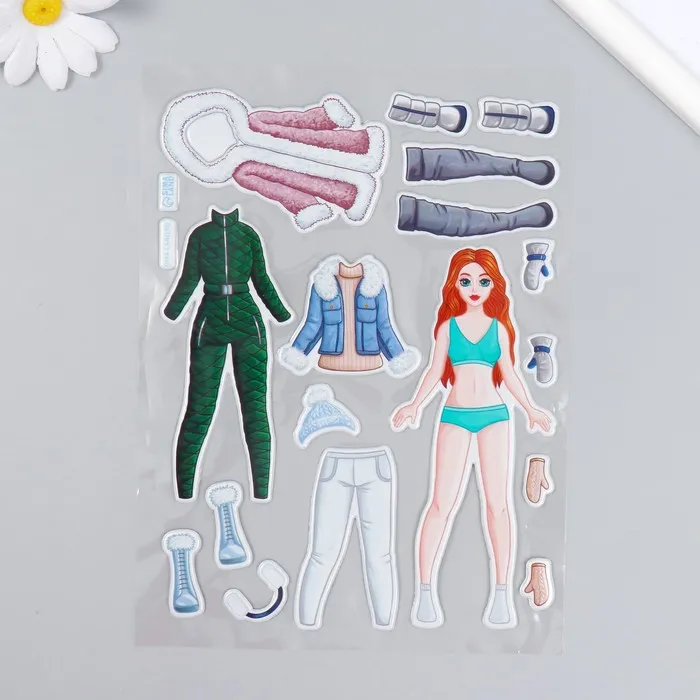 Наклейка-игра «Одень куклу. Зимний», для скрапбукинга, творчества, пластик, 15×20 см — Характеристики