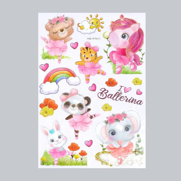 Наклейка пластик многослойная "Зверята балерины" 50х35 см