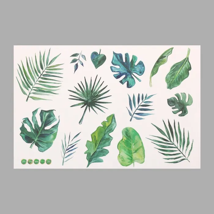 Наклейка пластик интерьерная цветная "Тропические листья" 40х60 см