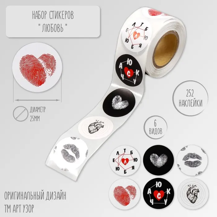 Набор наклеек для декора «Арт Узор. Любовь», в рулоне, бумага, d=2.5 см, 252 шт.