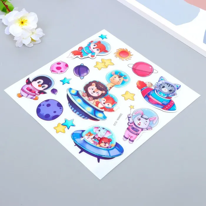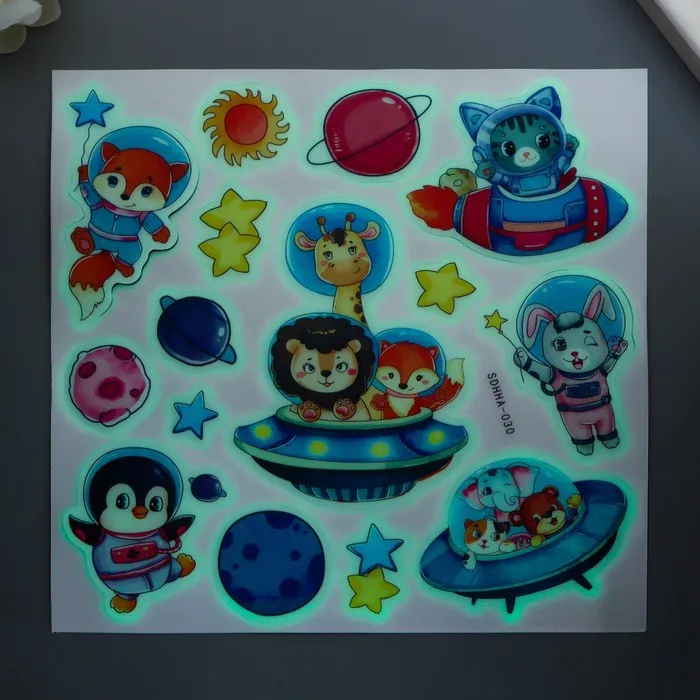 Наклейка интерьерная фосфорная «Звери в космосе», пластик, 20×20.5 см — Характеристики
