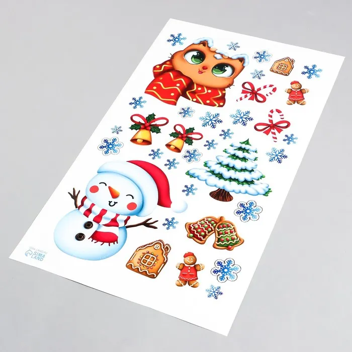 Наклейка интерьерная «Котик, снеговик, ёлка», 30×50 см — Характеристики