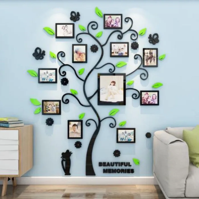 Со своими размерами 190×156 см, эта настенная декорация прекрасно заполняет большое пространство стены, становясь центром внимания в комнате. Эстетичное и продуманное расположение фоторамок по дереву помогает создать эффектный визуальный центр, организуя пространство и привнося в него структуру.
