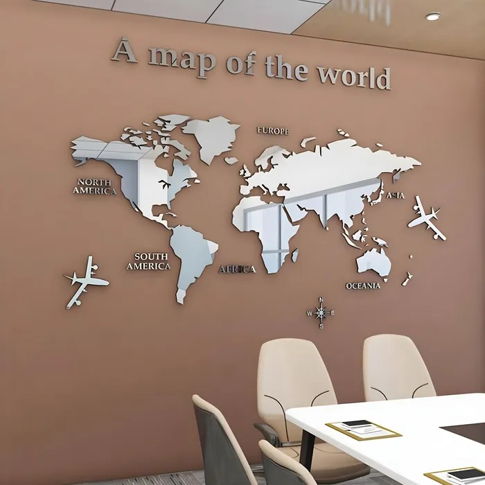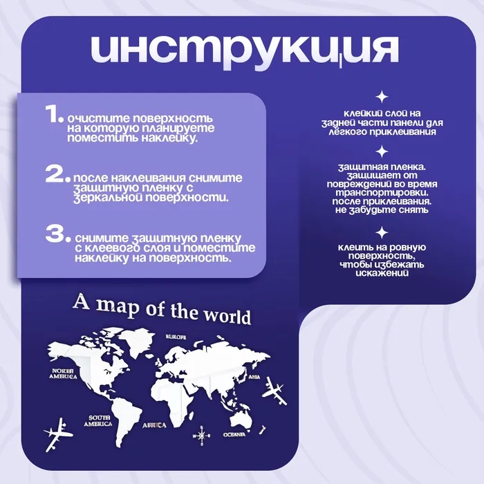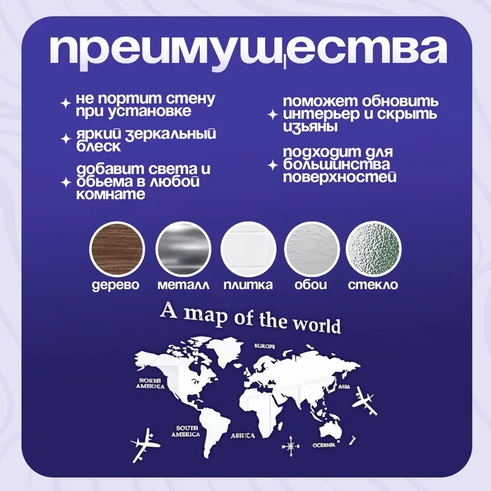 Наклейка интерьерная TAKE IT EASY «Карта мира», зеркальная, декор на стену, панно, 100×180 см — Характеристики