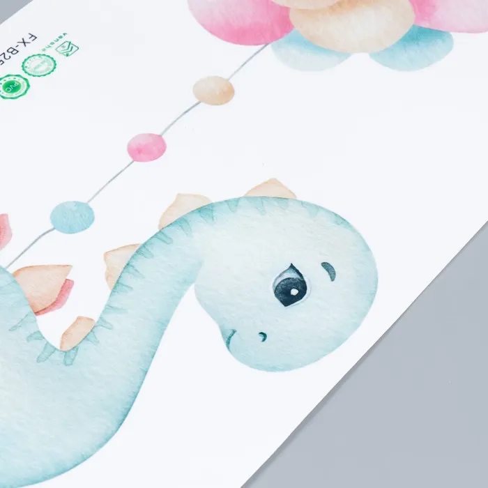 Наклейка интерьерная цветная «Динозаврик голубой с воздушными шарами», 30×60 см — Характеристики