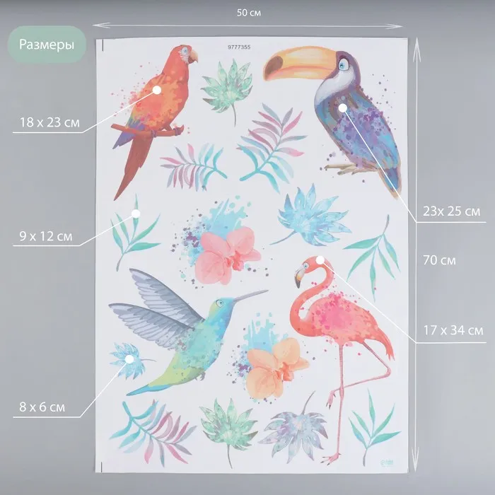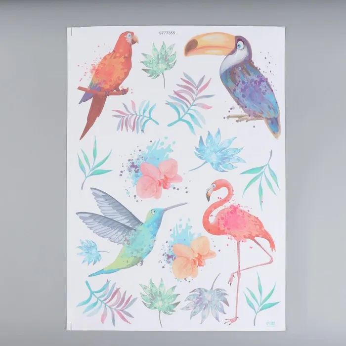 Наклейка интерьерная цветная "Экзотические птицы. Акварель" 50х70 см — Характеристики