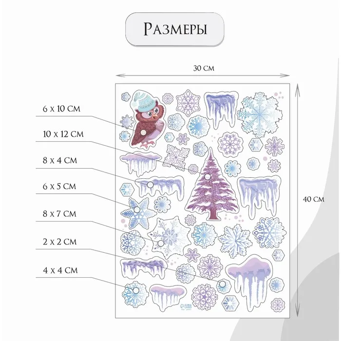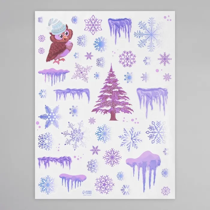Наклейка интерьерная цветная "Филин и снежинки" 30х40 см — Характеристики