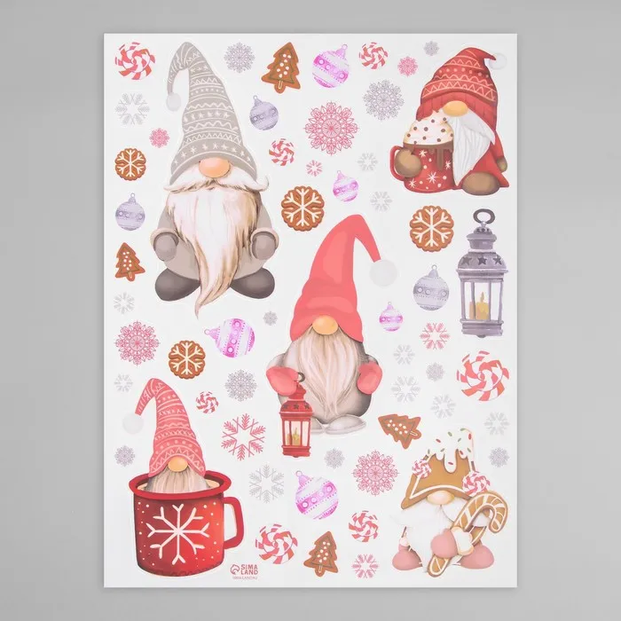 Наклейка интерьерная цветная "Гномы и снежинки" 30х40 см — Характеристики