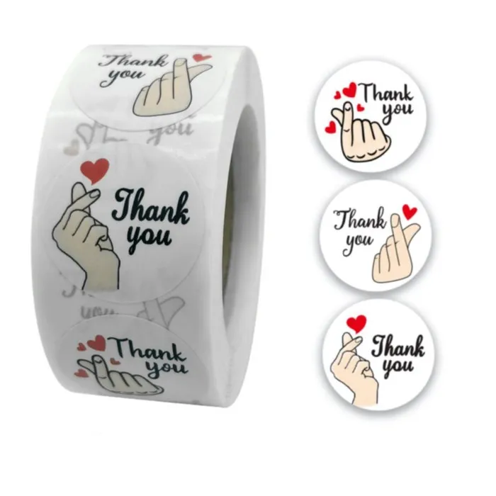 Наклейка бумага "Рука. Сердце" d=2,5 см 500 шт в рулоне 3х6,5х6,5 см