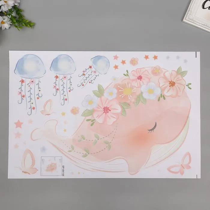 Наклейка интерьерная цветная «Китёнок с цветами и медузы», 40×60 см — Характеристики