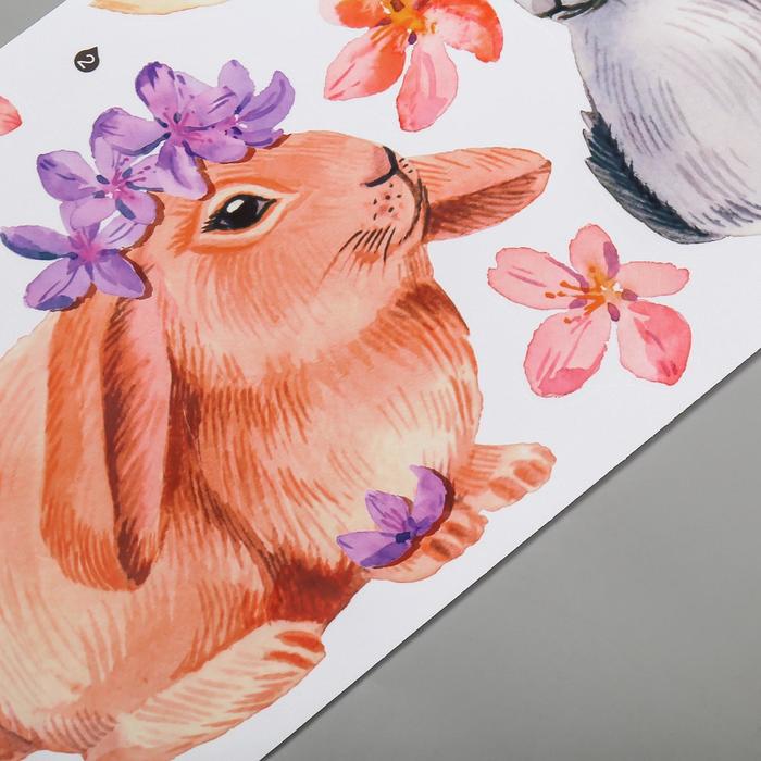 Наклейка интерьерная цветная «Милые кролики с цветочками», 30×90 см — Характеристики