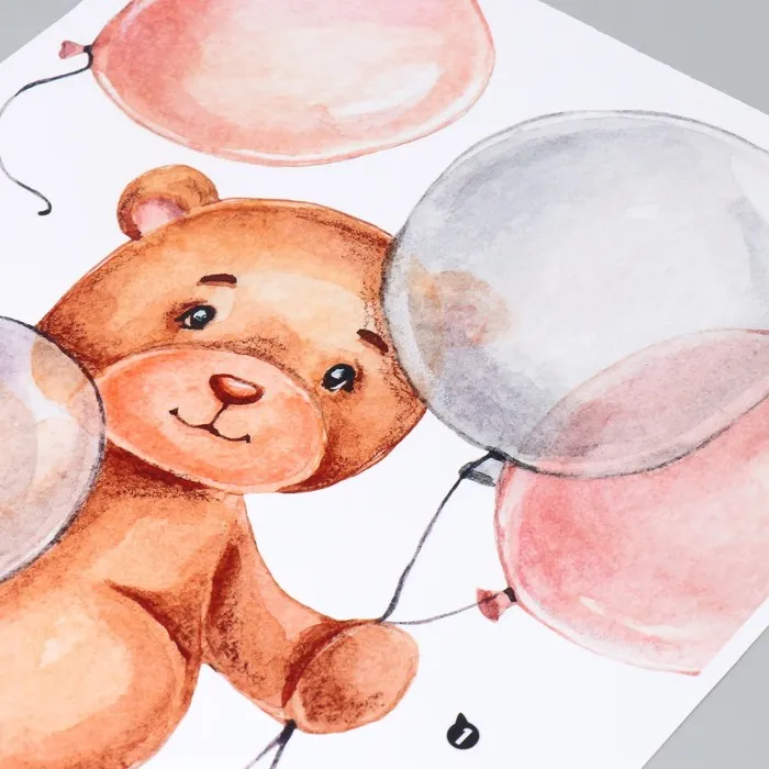 Наклейка интерьерная цветная «Мишка с воздушными шариками», пластик, 45×60 см — Характеристики