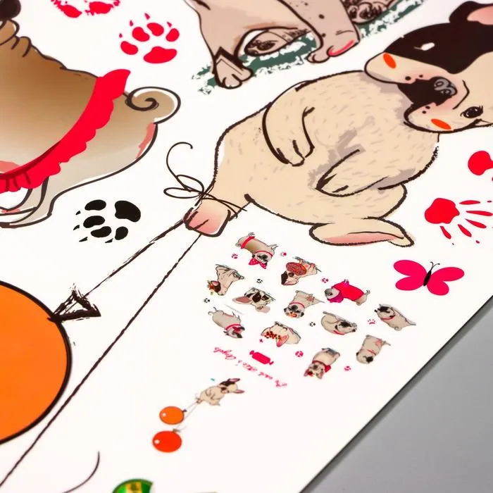 Наклейка интерьерная цветная «Мопсики», пластик, 50×70 см — Характеристики