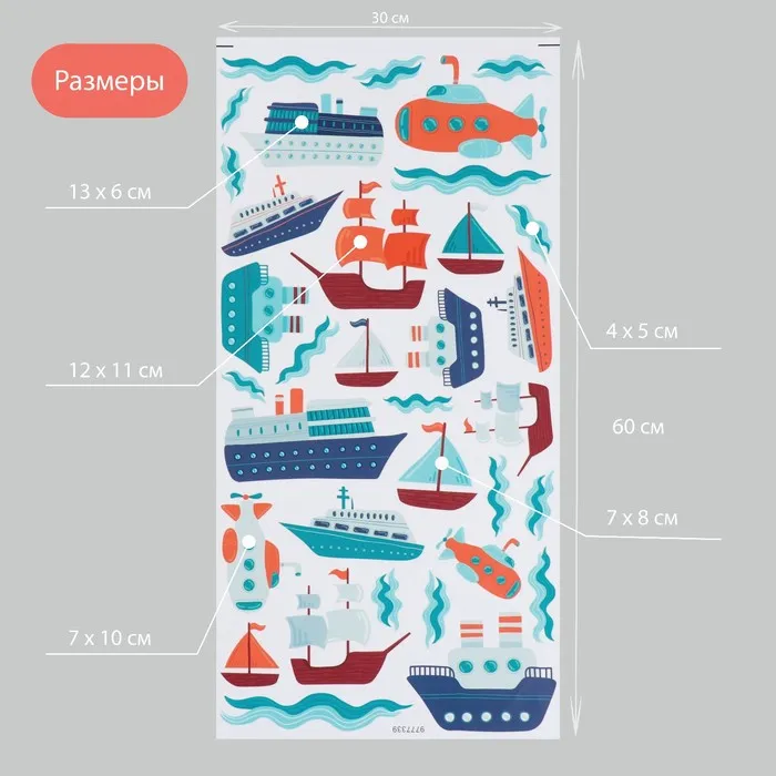 Наклейка интерьерная цветная «Морской транспорт», 30×60 см — Характеристики