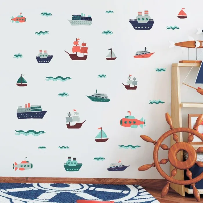 Наклейка интерьерная цветная «Морской транспорт», 30×60 см