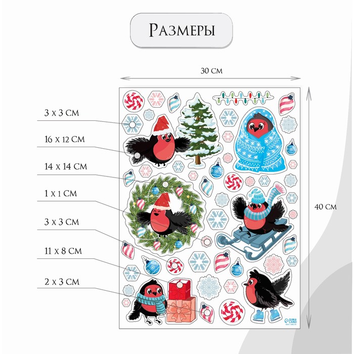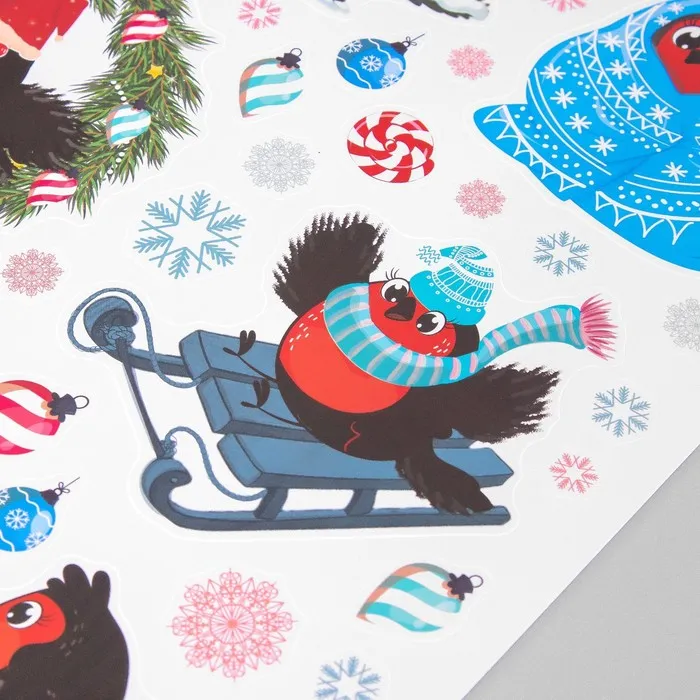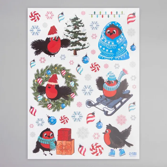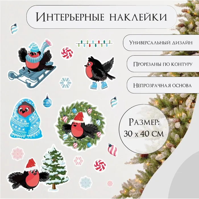 Наклейка интерьерная цветная "Новогодние снегири" 30х40 см — Характеристики